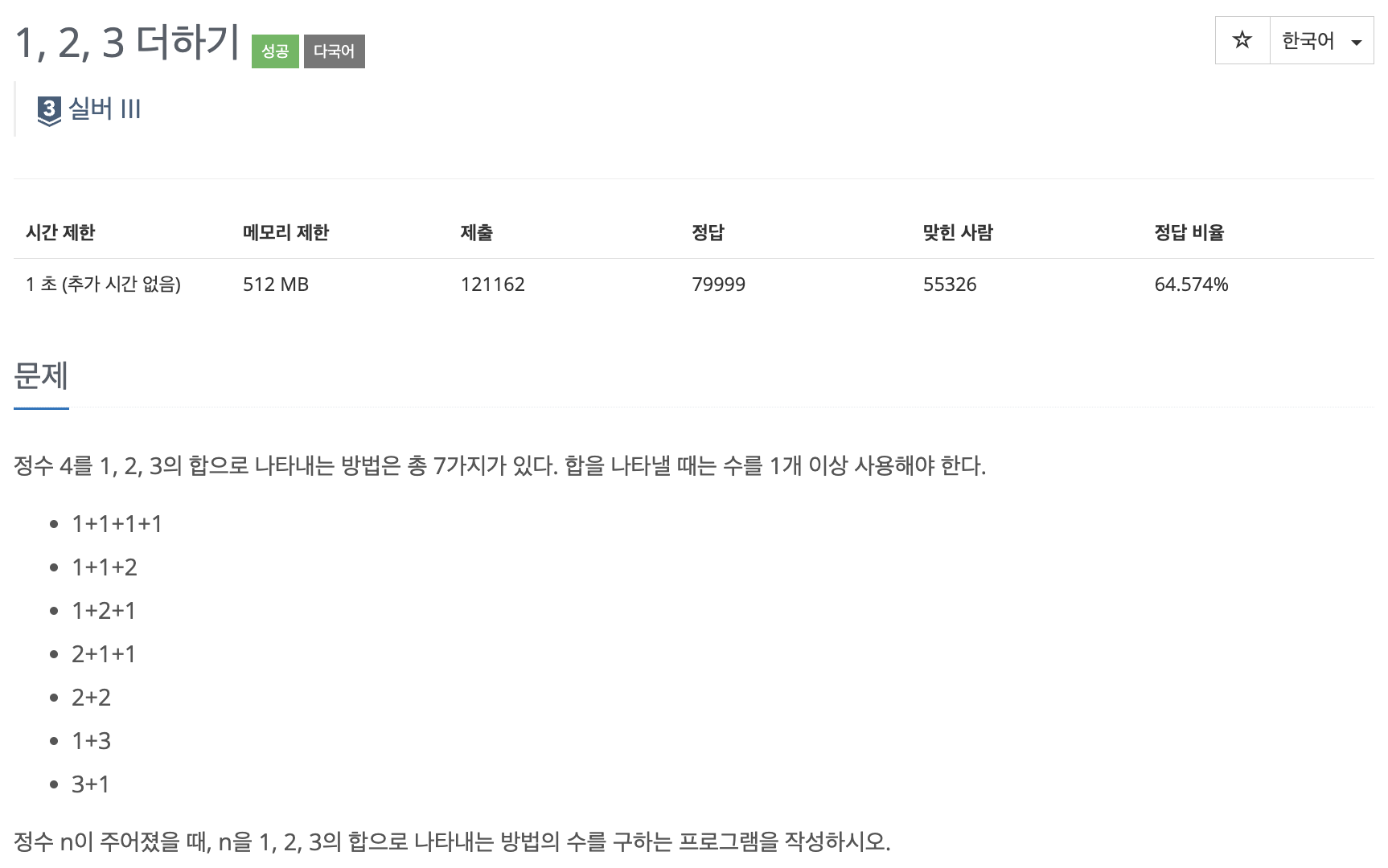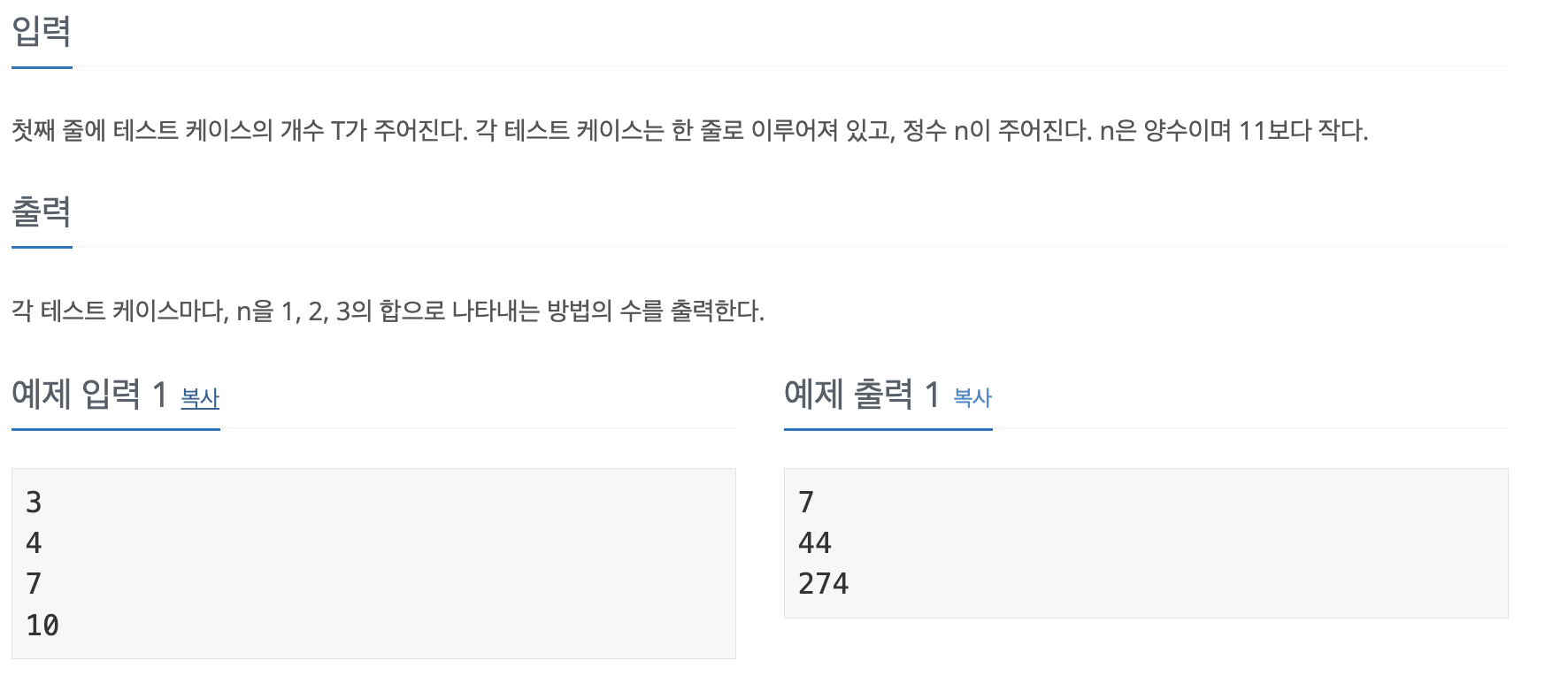 BOJ 9095 1,2,3 더하기 python코딩테스트 2024. 4. 16. 11:45