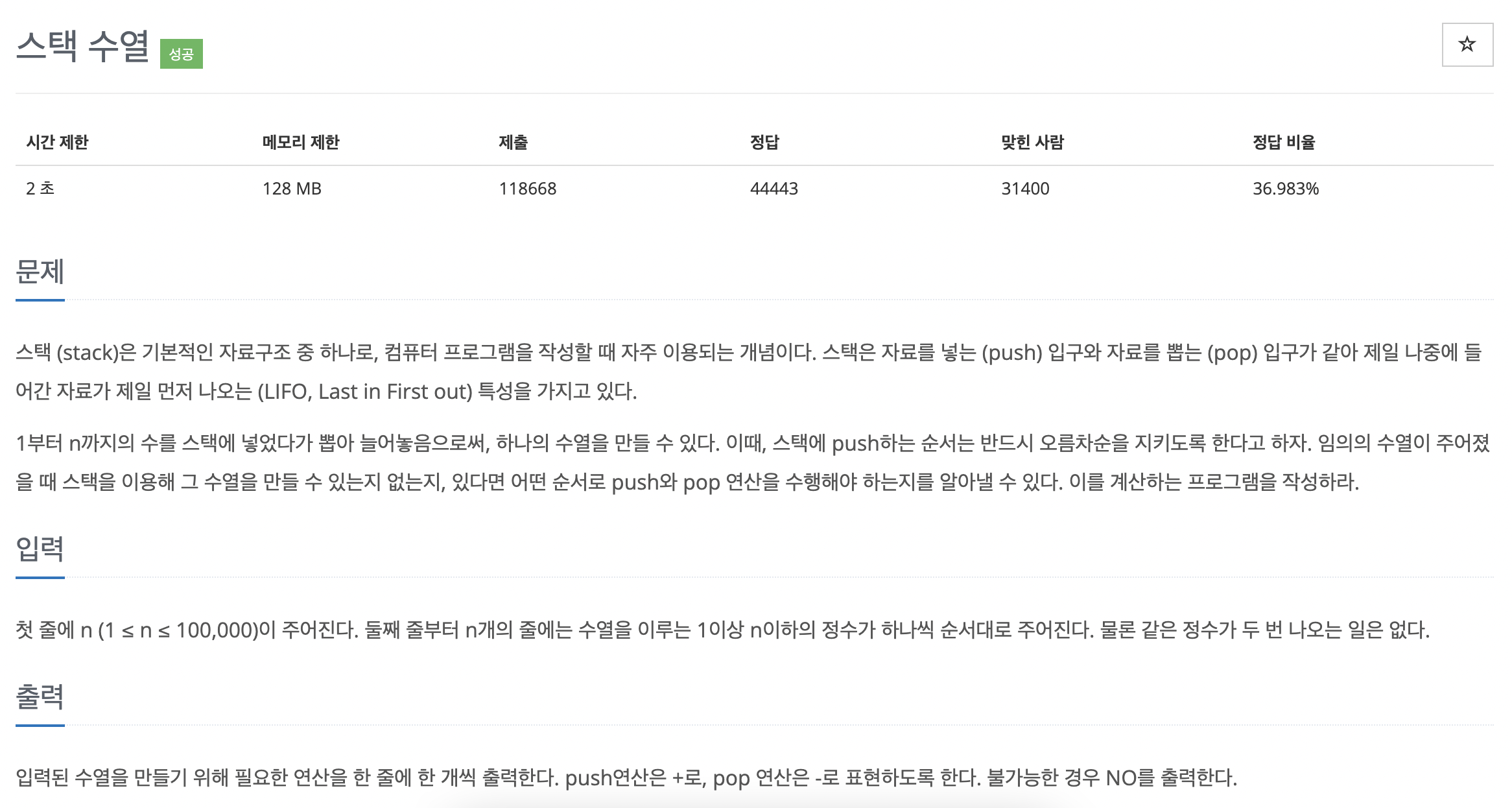 https://www.acmicpc.net/problem/1874